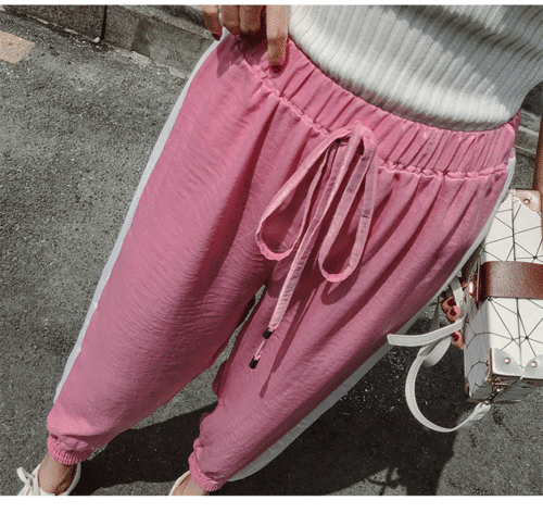 网红衬衫宽松粉色裤子,网红同款宽松衬衫搭配粉色休闲裤,轻松打造甜美造型